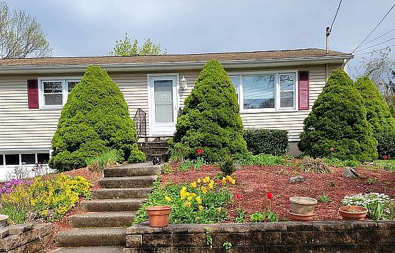 **NORTH END - SINGLE LEVEL LIVING - OPEN FLOOR PLAN - OUTBUILDING** This Ranch-style homes' floor plan and grounds are ideal for both indoor and outdoor entertaining. Hardwood floors and tile throughout. The living room has a coat closet next to the front door and a built in TV (included). Enjoy the spacious Eat-In Kitchen with a breakfast bar, centered at the heart of the house. The formal dining room features a slider to the huge 26' X 13' deck which steps down to a 13' X 13' cement patio, perfect for grilling. The primary bedroom is quietly situated at the back of the house, opposite end of the common areas, which has its own half bath and a 2nd TV (included), Down the hall sits an additional 2 bedrooms, full bath, linen, pantry, hatchway to the attic and door to the huge 50' X 24', dry, walk-out basement just waiting to be finished. The 2 car garage underneath offers access to the basement with laundry area. Additional off street parking on the driveway. The level backyard has privacy fencing and mature landscaping, creating a peaceful environment to relax. The large outbuilding can be utilized for so many things! It consists of 2 rooms: 1) 19.5' X 13' shed/storage room and 2) 15' X 13' clubhouse/rec room. Close to schools, shopping, public transportation, Merritt Parkway, I95, Train.