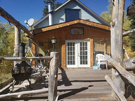 Privately located cabin in Wilderness Ranch on over 5 acres of wooded property. Enjoy the ability to be able to start the propane generator from inside. Cabin also offers a bathroom with a flush toilet, shower and water storage inside. Nice large loft for multiple beds upstairs with an elevated deck. Downstairs offers a full kitchen, another bed area, living room and a full deck off of the front. Furnishings included.