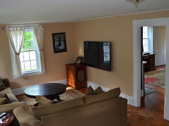 Charming antique farmhouse in desirable Dunbarton situated on 5 beautiful acres with mature landscaping. Optimal commuter location to both Concord and Manchester. Less than 10 minutes away from top rated Bow HS/MS. Large open sun filled post and beam kitchen with cathedral ceiling and wood stove offers the perfect setting for family gatherings. French doors lead to spacious bonus family room with built in shelving. Wide pine flooring throughout, new windows, additional wood stove in office/dining room, and fresh paint for both the interior and exterior. Two car attached extra deep garage with new garage doors. Large deck to enjoy sprawling backyard which abuts conservation land. Truly unique home and property. Sale contingent on sellers finding suitable housing. Open House on Saturday, 6/24 (10:00 to 12:00) please bring valid driver's license