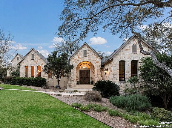 Exquisite Hill Country Estate Nestled on 1.36 Private Acres in Prestigious River Crossing. Enjoy the Ultimate in Outdoor Living - Breathtaking Views,Beautiful Oak Trees, Firepit,Pro Landscaping,Multiple Seating Areas, Outdoor Kitchen, & Sparkling Pool Complete with Spa.Stunning Great Room Boasts Upgraded Kitchen w/ Bertazonni Gas Cooktop& Custom Rock details.Luxurious Master Suite includes Spa-Like Master Bath+ Secondary Bedroom w/Bath Down.Restoration Hardware Lighting!Oversized 3 Car Garage-Golf Cart Bay