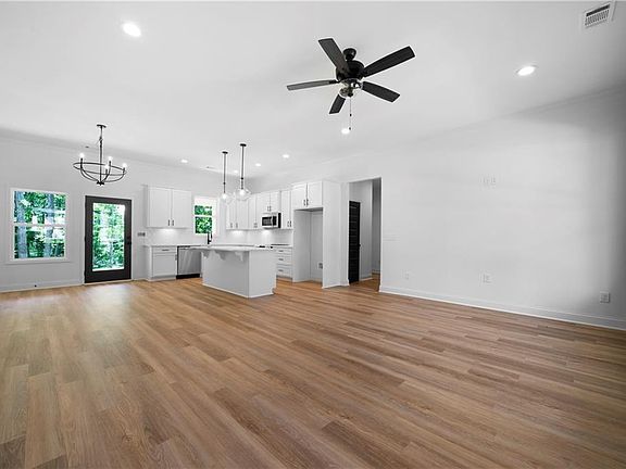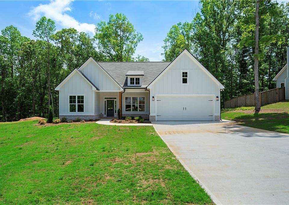 NEW 4 bedroom, 2 full bath farmhouse in South Paulding! Gorgeous stepless ranch plan with an open concept. Kitchen featuring white cabinets, quartz, an island, breakfast bar, and stainless appliances. Large great room for entertaining. Split bedroom plan with large master and beautiful master bath with large tiled shower and garden tub. Three additional secondary bedrooms. Upgraded trim and accent walls throughout. Covered patio for relaxing. Half acre level lot with four sided sod.