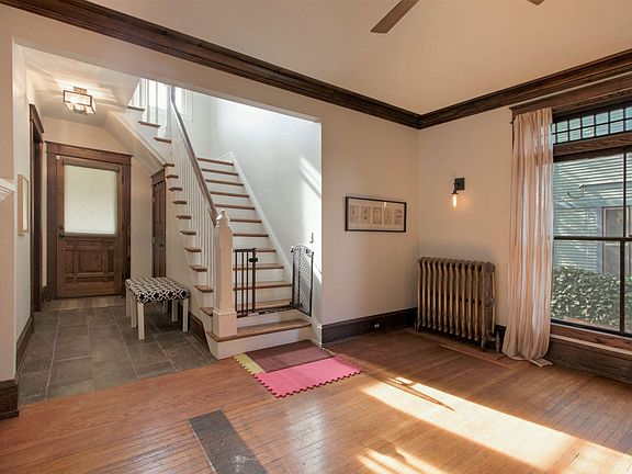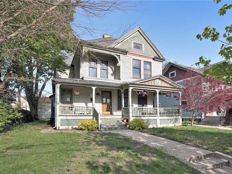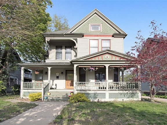 You will fall in love with this 4 bedroom, 2.5 bath, historic Cherry Hill District home that is loaded with character and charm. The covered front porch leads to a entry with tile flooring and coat closet. The huge living room with brick fireplace, tall windows, and original hardwood floors is open to the main floor office, family room, and dining area with built-ins. A kitchen with all appliances included, laundry, and half bath completes this level. The second floor has a master suite with private full bath and is open to a second floor large private balcony overlooking the backyard. Three additional bedrooms and a second full bath completes this level. A spiral staircase leads to a finished third floor with antique fireplace and ample space. A Michigan basement, hand carved front door, and a great location with access to all the City has to offer are just some of the extras to be found in this desirable home.