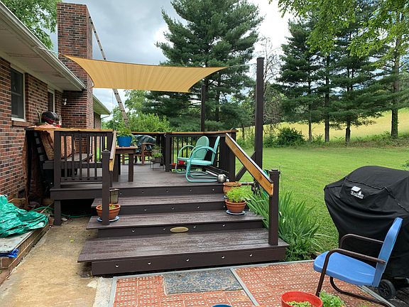 Paradise found! High above the hustle and bustle, finds this picturesque setting surrounding this classic 3BR/2 bath brick rancher. Lovingly maintained by the current owners family for over 30 years, you will feel right at home. Love the lush yard, mountain views, and all one level accessibility of this home. Front and back decks are custom built with details to delight. Inside are large rooms, starting with the living room, into the family den with fireplace, adjoining kitchen and cozy breakfast room. Down the hall finds 2 guest rooms, with large shared hall bath, and a master bedroom/ master bathroom. LOADS of storage throughout, closets everywhere. Really lovely home, with attached garage and plenty of space outdoors to tinker and enjoy your acreage.