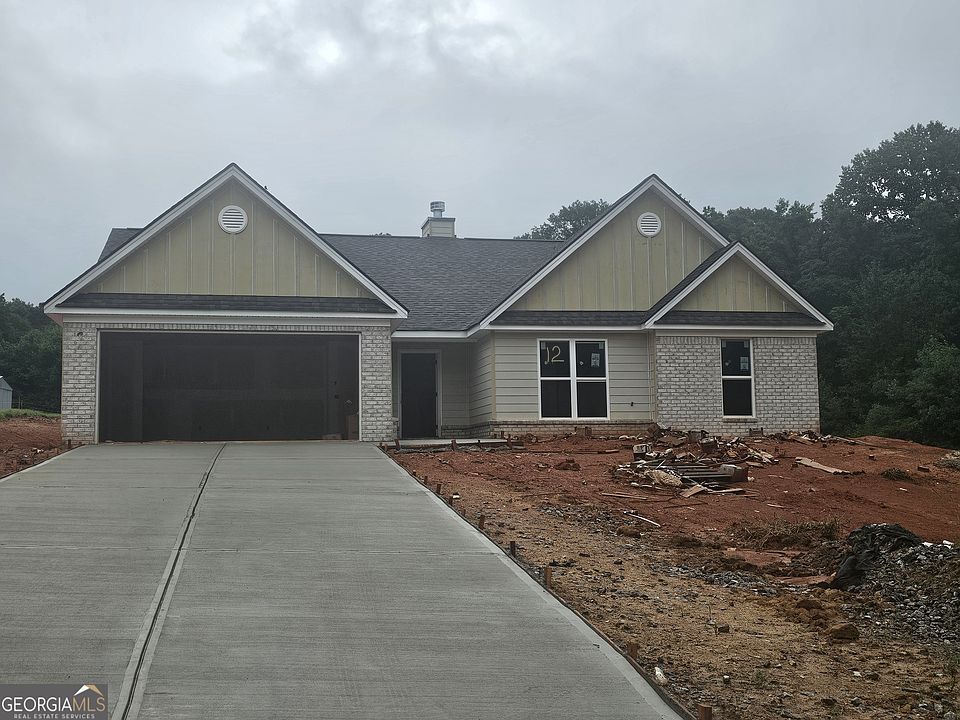 Craftsman style ranch, 4 bedroom, 2 1/2 bath, custom white cabinets, granite kitchen countertops, Formica bath countertops, large kitchen island, walk in pantry, black stove, microwave and dishwasher, open great room with brick accent wood burning fireplace, large dining area, master suite has walk in closet, master bath has double vanity, large garden tub and separate shower, 2 car garage, warranty. Hannah Plan