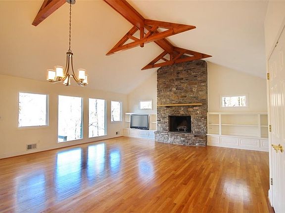 Renovated in 1996, 2011, 2015. New owners have updated in 2021 with new concrete driveway and retaining wall, new garage door and opener. 2 new HVAC systems installed. New gutters and gutter covers. Inside new quartz counters, farm style sink, upgraded kitchen appliances to include gas cooktop and new oven. Updated bath in second master to include walk-in shower. Hall bath with new floors. 3775 sqft; All season lake and mountain views from every window and room; Shaded south facing, open north facing with 308 ft lake frontage; 3/4 acre; Privacy with 3/4 acre on level road and cul-de-sac; 46 Anderson Casement windowalls, all with internal screens; 3 brm 3 1/2 baths; 2 Masters on main, vaulted ceilings; Bdrm and office in finished basement level with marble bath and heated floor; Great room with vaulted ceiling and trapezoid windows, 2 fans, can lighting; Custom oak cabinets with self closing drawers and doors, rollout drawers, Sub-Zero Fridge, 4 ft skylight, vaulted ceiling, 2 banks of cans, 12 ft Anderson double slider to deck; Hearth room with 14 ft vaulted ceiling with stone fireplace, trusses, custom shelving; laundry rm with 12 ft butcher block countertop with farm sink and cabinets on Pergo floor; Hardwood floors in Great rm, Hearth room and Kitchen; Large entry with Trusses, redwood door and panels, and wood ceiling; Stone sidewalk, walled front patio; Stone siding with hardiplank surround; 2 car attached garage; new lifetime roof installed 2016; Exterior screen porch, lake/mountain view deck with salt water hot tub on basement level; Large, insulated crawl space with shelving, cabinets, storage platform; 5 Minutes to North.