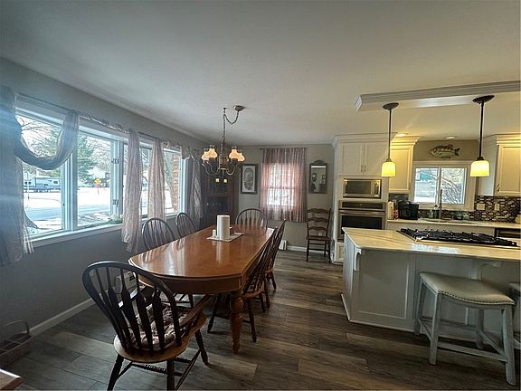 Large spacious colonial home with beautiful updated eat-in kitchen w/ stainless steel appliances, Large family room with fireplace overlooking a nature filled backyard, living room, five bedrooms upstairs, (master bedroom with newer master bath),laundry, office & 1 bedroom on first floor. Oversize two car detached garage. Walking distance to Hobart William Smith Colleges, close to downtown and shopping.