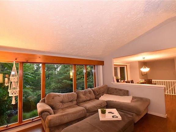 Check out this very private home with 4 bedrooms and 3 full baths on an acre! The living room and dining room features an open floor plan with tons of natural light coming in. The living room also has vaulted ceilings, skylight and doors leading to the sunroom of the rear of the house. Recently installed was a beautiful rear deck also where you can enjoy great times entertaining. The master bedroom and en-suite are a real treat with vaulted ceilings, a walk-in closet of your dreams, and a beautiful bathroom. The lower level can either be your fourth bedroom or tv room with a full bath. There's also plenty of storage. New siding and shutters, outdoor lights, newer a/c in livingroom, tile floor in bar room