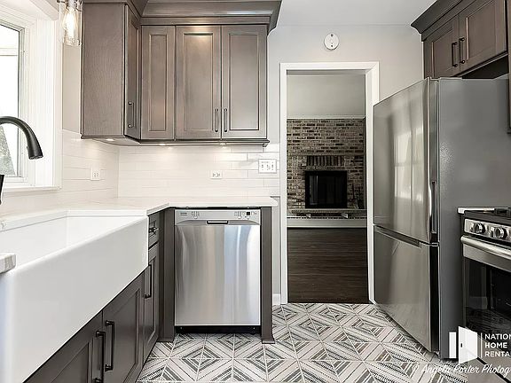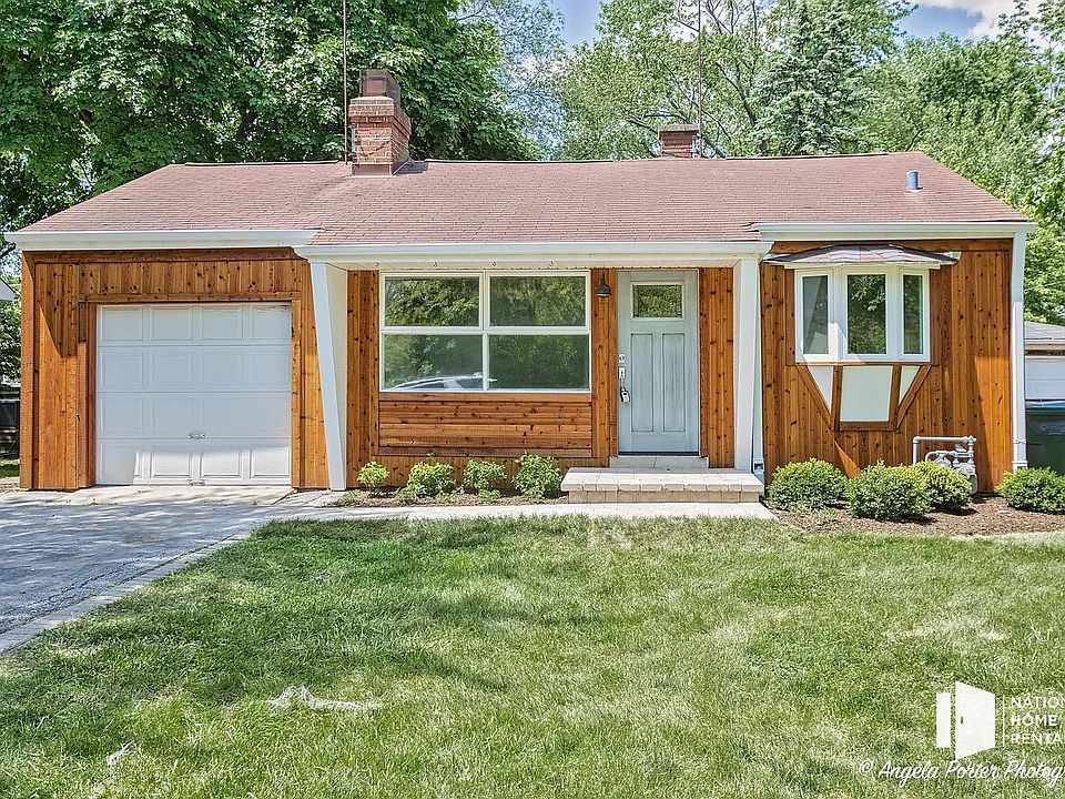 Step into this stunning, recently renovated 4-bedroom, 2-bathroom home located in the desirable New Trier Township at 270 Lagoon Dr in Northfield, IL. The beautiful curb appeal, featuring cedar siding, new brick paver sidewalk, and fresh landscaping, is just the beginning. Inside, you'll be greeted by completely refinished hardwood flooring throughout most of the main level. The combination living and dining room is anchored by a cozy wood-burning fireplace and a tasteful accent wall, leading into the freshly redone kitchen. This chef-ready space boasts a newly tiled floor, new soft-close cabinets, new stainless steel appliances, new quartz countertops, and a charming white porcelain farm sink with modern pendant lighting. The main level also includes three good-sized bedrooms, with both the primary and second bedroom offering exterior access to private deck/patio areas, and a completely redone full bathroom.