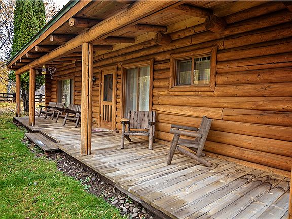 Welcome home to this 1911 sq ft one of a kind log home on 3.65 acres. Private country setting and beautiful trees, 2 large shops on this property, 5 bay shop is insulated w/heat, RV shop is powered & insulated. Home boasts vaulted ceilings, loft space, new flooring in kitchen & bathrooms and a grand rock wall/fireplace. 2 bedrooms w/ lower level master suite & 2nd story room w/balcony, lower level laundry & mud room.