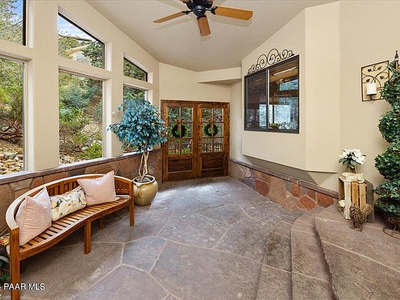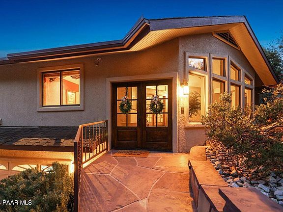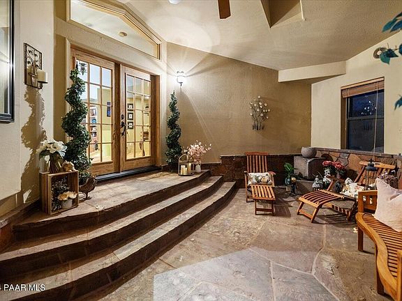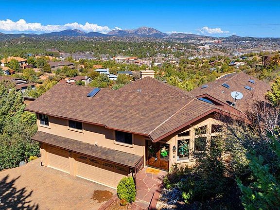 Prepare to be utterly captivated as you approach this extraordinary property, where opulence intertwines with breathtaking views and serenity at every glance. From the iconic Thumb Butte to the sparkling Prescott city lights to the majestic Granite Mountain, the vistas are simply mesmerizing. A grand pavered driveway welcomes you to the expansive flagstone atrium entry, setting the tone for the unparalleled experience that awaits. From the custom stone hearth fireplace to the million-dollar mountain views to the unexpected privacy and the convenient dumb waiter from the garage to the kitchen, this home epitomizes a lifestyle of unmatched refinement. Nestled among towering pines, the oversized homesite spans just over a half-acre, offering ample room to roam and revel in nature's splendor.