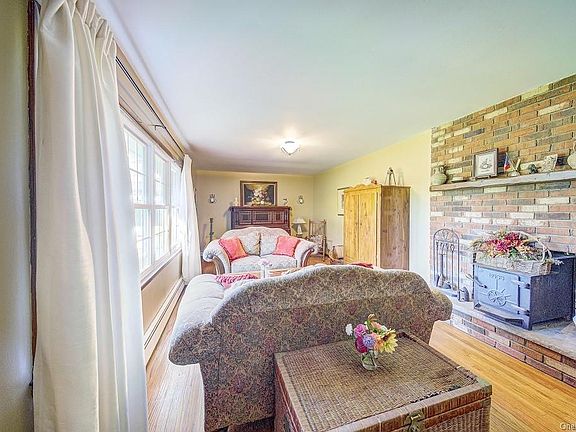 This beautiful cedar shake ranch is located in a tranquil country setting, decorated with window flower boxes and many features. Along with the main living area there is a 1 bedroom In-Law apartment with easy ground level access from the driveway. Enjoy the double sided brick faced fireplace from both the living room and dining/kitchen area. From the dining room look out over the backyard with it's many shade trees, or step out on to the maintenance free 14'x20' Trex deck to view the local wildlife. This sturdy house is framed with kiln dried Hemlock wood and has the original Oak wood floors. The kitchen has stainless appliances, quartz counter tops, tile back splash, and solid cherry cabinets. Windows have been replaced. The water treatment system and the 3 zone heating system have been updated. Full walk out basement. Nest thermostats and 8'x12' shed are included.