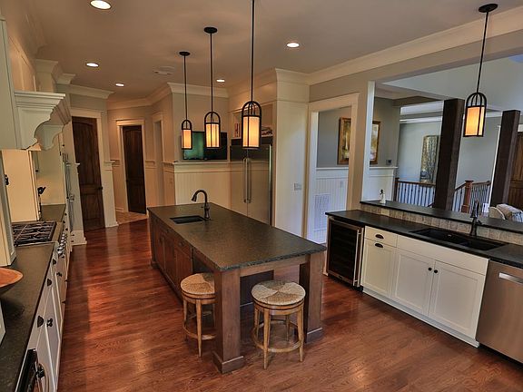 Dynamic Classic design and styling in this beautiful waterfront home. Gourmet kitchen with custom cabinets and expansive granite counters, large built in stainless refrigerator, gas stove, wall oven and all the bells and whistles! Screened in porch off the eat-in/dining area boasts a beautiful wood burning fireplace with tv for the best outdoor living experience. First floor master suite with large master bathroom. Upper level has second master suite, office or guest suite. Lower level offers additional entertainment area with 2 additional bedrooms and newly built bunk bed room that sleeps an additional 9 people! This home sits on a lovely lot with lots of privacy - excellent lake frontage with covered dock. This home is a must see! Membership required. Easy access to shopping and Clemson situated close to the Reserve gate.