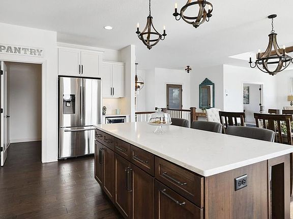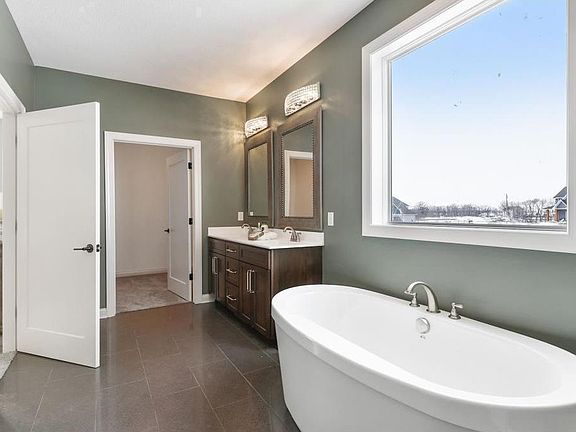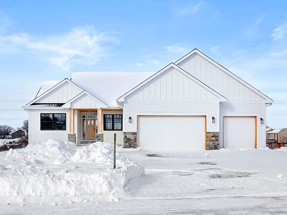 Completed new construction home! Elegant home features open kitchen/living/dining areas with 9' ceilings, gas fireplace, beautiful center island and walk in pantry. Spacious main level owners' suite features box ceiling, soaking tub, separate shower, double vanity, walk in closet. Finished lower level boasts family room with gas fireplace, 2 addl bedrooms, recreation/exercise room. Extra deep garage is insulated, sheetrocked. Close to trails, parks. Award winning Delano Schools. Interior photos are from a different staged model; same builder. Rare new construction home with finished walkout lower level.