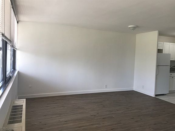 Newly renovated large studio with terrace. Rent includes heat, hot water, gas, air-conditioning, electricity. Lots of closet spaces floor to ceiling size. Building's amenities include 24 hr doorman, gym on premises (with fee), washer/dryer room. This unit has a parking spot available for $150/mo. Located very near Grove PATH station, near restaurants, shopping, waterfront, Light Rail.