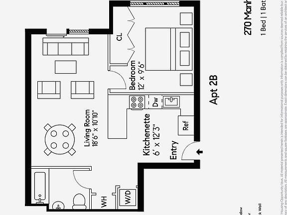 This is a 1 bedroom, 1.0 bathroom, apartment home. This home is located at 270 Manhattan Ave #2B, Brooklyn, NY 11211.