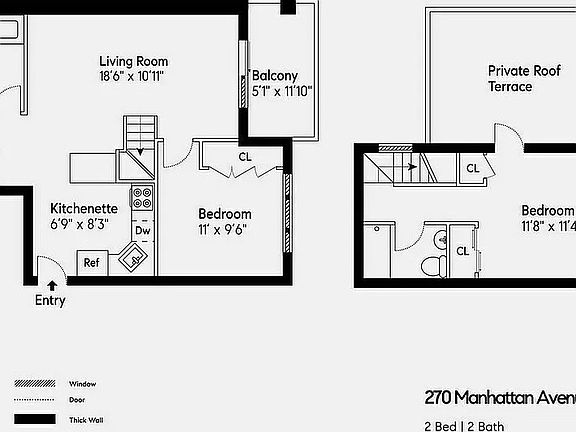 Available for Immediate Occupancy! Welcome to 270 Manhattan Ave Penthouse C! This beautiful 2 bed/2 bath duplex features a private roof deck with amazing city views, PLUS a spacious balcony. It has a wonderful layout with bedrooms on separate floors, an open concept living and dining area, and a gorgeous modern kitchen with plenty of counter and cabinet space. You'll also find an in-unit washer/dryer. This bright and sunny home is located in a wonderfully maintained boutique elevator building, which has a spacious common roof deck. Parking and storage are also available. Just steps away from the L train at Graham Ave, getting around the rest of the city will be a breeze.