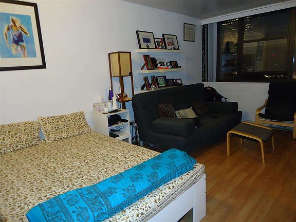 LARGE AND SUNNY STUDIO WITH HUDSON RIVER/NY VIEWS. LOTS OF CLOSET SPACE. RENT INC. ALL UTILITIES (HEAT, H/W, GAS & ELECTRICITY). 24-HR DOORMAN BLDG, LAUNDRY & GYM ON PREMISES. NEAR PATH, LIGHT RAIL, FERRY, MALL.