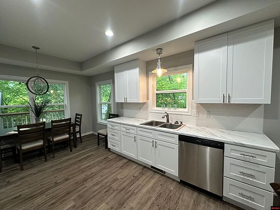 Welcome to downtown Cotter, Arkansas, where the White River flows gracefully. Immerse yourself in the charm of this move-in ready, quality-built home boasting 2 bedrooms and 2 baths. With low maintenance vinyl siding, this newer home is designed for convenience. Step inside to discover a modern décor, vinyl plank flooring and an open floor plan that creates a welcoming atmosphere. The spacious kitchen, complete with all appliances, leads to a back deck, perfect for enjoying grilling sessions with family and friends. The two-car detached garage provides ample space for your boats and cars. Plus, you'll be just a two-minute drive away from the public boat launch and the historical Cotter bridge. Don't miss out on this opportunity to embrace the beauty and convenience of downtown Cotter living!
