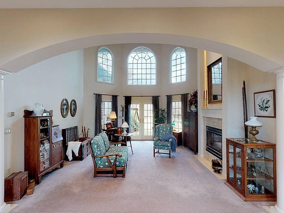A stunning home with both stately and intimate. Marble flooring underfoot in the Grand Foyer welcomes you, immediately opening to the Formal Living Room with gas fireplace and 17 high ceilings. To the left of the foyer is the Dining Room with hardwood cherry flooring that continues the beautifully designed family wing. This intimate area features a family room with fireplace, open concept kitchen, breakfast nook, wet bar and 1/2 bath plus mudroom/laundry area with access to the garage. The Kitchen is precisely what you would expect in a home of this calibre with warm granite countertops and red birch cabinets. To the right of the foyer is the office/library and master bedroom suite with large walk in closets, privacy glass blocks, jacuzzi, and double vanity. The 2nd floor has two bedrooms w/ a jack-n-jill and a third bedroom with full bath. The outdoor covered entertaining area is second to none with a built in stone fireplace and grill, and is wired for TV.