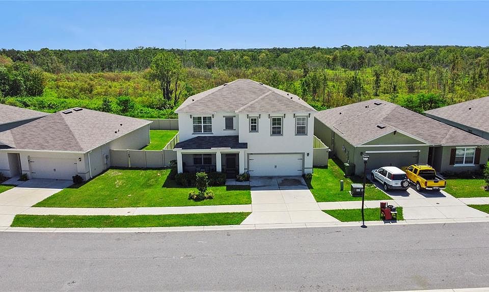 Price Reduced! Beautiful 2020 5/3 home with no rear neighbors and low HOA dues and bonus room/loft plus office space. Perfect if you work or study from home, this home offers a neat open concept with luxury laminate flooring throughout - NO CARPET HERE! full-sized kitchen island with seating and plenty of counter space for food prep makes whipping up dinner easy. The dining and family room combo offers plenty of natural lighting with slider glass doors leading to your outdoor patio overlooking the CONSERVATION AREA. The master bathroom features DUAL SINKS, WALK-IN SHOWER and 2 WALK-IN CLOSETS. This property also includes stainless steel appliances, blinds, in ground sprinklers, FULLY FENCED BACKYARD, Enjoy the early morning sunrises sitting under your custom built pergola with your favorite cup of coffee or hot tea, Smart Home Technology with Alexa, screened front porch. Located 6 miles from Legoland Theme Park and Water Park and 20 miles from Disney attractions, conveniently located close to shopping centers, hospitals, restaurants and more. *** BITCOIN & ETH OK***