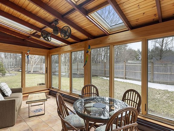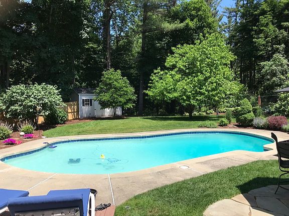 Pristine neo-colonial gem on 2+ acre lot in private yet accessible East Boxford. The 4 bed, 2.5 bath is light-filled, expansive and meticulously maintained, with newer roof and systems. First floor features great room with cathedral ceiling, skylights, and gas fireplace; living room with exposed wood beams and gas fireplace; eat-in kitchen with newer appliances and separate dining room; and delightful 4-season sunroom overlooking a fenced yard, mature plantings and landscaped gardens. The 2nd floor offers spacious bedrooms and two baths. Finished basement has ample space for a home gym, office, or media room. Outside, a large deck and in-ground pool call out for carefree living and gracious entertaining. Includes 2-car garage and ample parking in driveway. A rare combination of modern convenience and sylvan retreat, all within easy access to Boston and points north and moments from top-class hiking, biking and boating at Harold Parker State Forest and Ipswich River Wildlife Sanctuary.