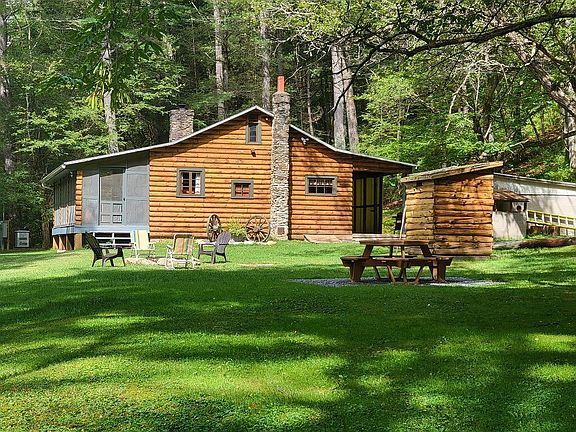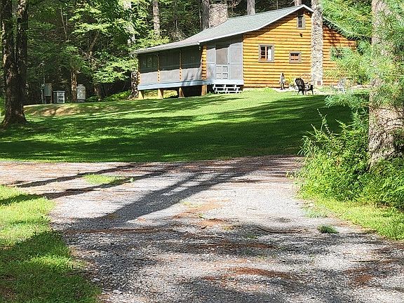 Beautiful setting for this rustic cabin in the woods! You have access to Mill Run and even a small waterfall! Beautiful stone fireplace to cozy up to during the cooler weather! Sit on the huge screened in sunporch and just enjoy the peace! Ride your bike down to the Rail Trail! This includes a whole house generator and furnishings! This is the true definition of a cabin in the woods! Truly a touch of heaven! This is currently being used as an AirBnB rental unit so available showing times may be limited due to guests. Please no drive-bys on the weekends. Heat source, mini-split system and gas insert in fireplace.
