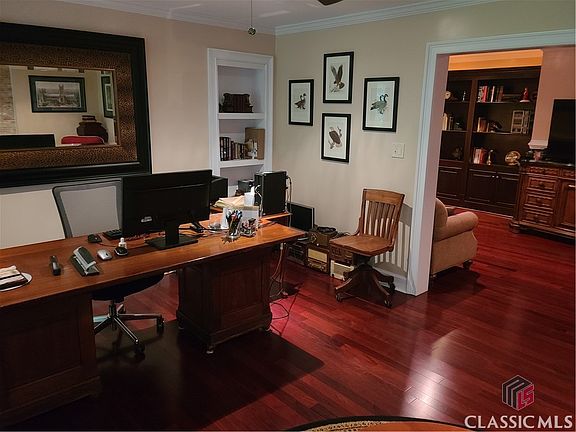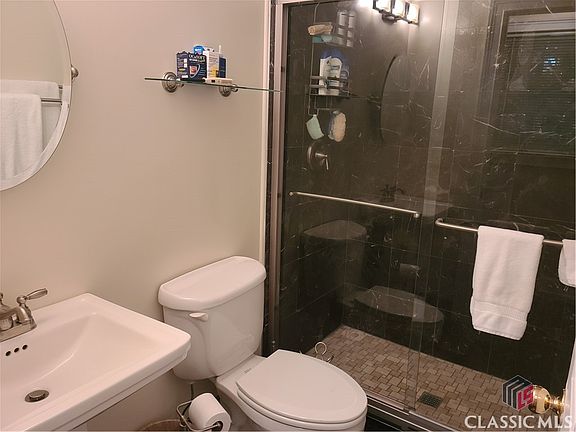 Excellent space and floor plan in this elegant, yet warm and inviting, 5BR/3.5BA brick traditional home that is situated on 2.26 serene acres bordered by a creek. Entertaining is a breeze in this magnificent light and bright home that features a formal living room and dining room, both with bay window and generously sized Great Room with built-ins, wood burning masonry fireplace and French doors leading to the expansive deck. The recently renovated kitchen is a chef's dream with granite, tiled backsplash, island, with breakfast bar, custom cabinets, planning desk, wall oven, pantry and separate eating area, with bay window, that overlooks the private wooded yard. A half bath, with granite, and oversized laundry room with an additional enormous pantry completes the main living area. Upstairs you will find the private master suite, three additional bedrooms and hall bath. The master bedroom has a trey ceiling and a comfortable sitting room or study plus two walk-in closets. The luxurious and beautifully redone master bath features claw-footed tub, separate tiled shower and his and her vanities. The additional three bedrooms are well-sized and the hall bath has his/her vanities, with granite, and tub and shower. The finished terrace level has endless possibilities and includes Brazilian cherry hardwood floors, tile floors and smooth ceilings. The media room has custom built-ins and there is an upscale office area with a masonry fireplace, built-in bookcases and ample windows overlooking the backyard. A third oversized room could double as a rec room, exercise room or living area for guests. There is a wet bar and full bath finishing out this level. Additional features include hardwood floors, crown molding, wainscoting, custom cornices in the living room, dining room and Great Room, front and back staircases for easy access to the main and upper levels, an abundance of storage space and an outside storage building.