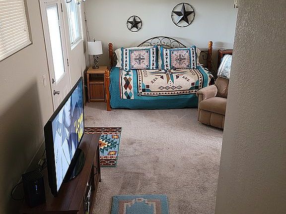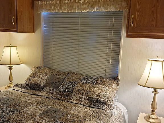 PRICE REDUCED. Well kept park model with large covered deck and rear patio. Huge storage drawers under deck. Frame addition 16'x20' can be TV room or 2nd bdrm. Washer and dryer located in addition. New roof (2021) and laminate flooring (2020). New queen mattress and stove. Good quality cabinets. Central AC and heat. Fully furnished, including new power loveseat recliner and two TVs. Located at Venture In, a well maintained RV park with very nice amenities and lots of activities.