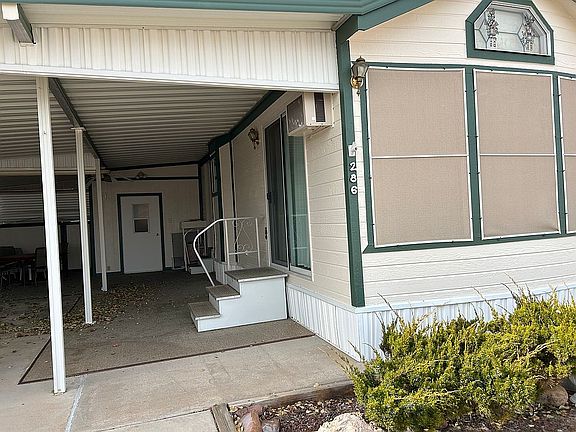 Park Model in 55+ Community new roof 2021, exterior paint 2024, ac, paver patio, extra large carport, washer, dryer. Dog park, community center, exercise room, within one mile of two golf courses and aquatic center.