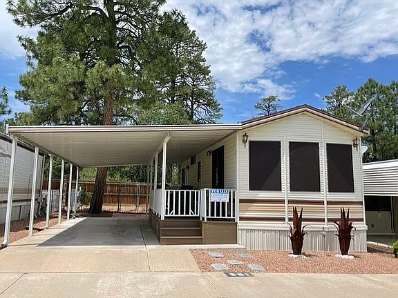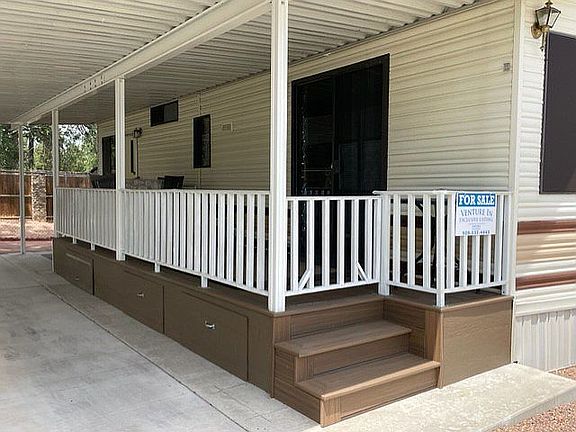 Sp 361 – This is a super deal for this Resort, this home is a 1988 Cavco and is being offered at $59,900.00. This home is located on the perimeter of the Resort, making for a lot of outdoor space, has a fenced area with dog run and artificial grass for your pets a private yard and a large brick patio. A New Roof! There are hookups for laundry room if you choose to add that on. The home has newer central a/c. The home is a new remodel with new floors, lighting, fans, paint, bathroom cabinet, mirror closet doors in the bedroom with new bed and ceiling fan. The ceilings have been modernized and scraped and textured. The home has a u-shaped kitchen. This has central a/c and heat and is very clean. This home is in excellent condition. This home is priced to sell, and the owners are ready to make a deal. This home has all new high-end furnishings, beautiful décor, and a new trex full length deck. The Annual Rent is paid in full through April 2024, making this an added special deal! This is truly a home away from home in the pines! Close to the dog park in the center of the Resort, near all the central buildings with activities. Venture In is Open from May 1 - October 31 for your Seasonal Residency! For more information on Venture In and all its amenities and offerings, please call the office, ask for Eileen or please see us at - https://rvonthego.com/arizona/venture-in-rv-resort/