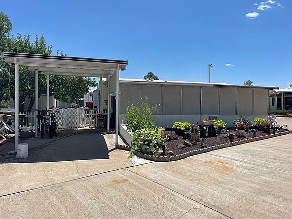 Corner lot with lots of parking and a tall carport- remodeled 2022 very very nice. 1/1 very beautiful seasonal park Venture In RV Park. Price is for home only. Full length enclosed patio that adds to your living square footage. A/C, washer dryer, refrigerator, mostly furnished. Fully stocked kitchen.Master BDR is large enough for a King bed. Call Karen 480-221-1126 Golf Cart included - Storage Building - fenced yard.