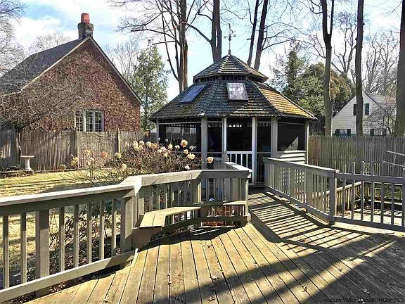 Quintessential North Manor colonial created and maintained with the best of everything! Step inside the front door and you won't know where to look first. Charming entrance opens to warm and inviting living room with gas-fired cobblestone fireplace, formal dining room, office/playroom, and custom kitchen. The kitchen opens to the heart-of-the-home's large open concept rear addition with multi-windowed breakfast room and expansive Great Room with soaring ceiling and exposed beams. Both rooms look out to a rear deck and custom-built screened gazebo with sunken hot tub. A convenient half bath is tucked in adjacent to the attached 2-car garage. Venture upstairs to four bedrooms - two of which are separate, and yet also part of a three-room suite. The suite's third room with cathedral ceiling and skylights is perfect for an upstairs study, play room, or quiet evening retreat. Meticulously preserved original full bath and convenient upstairs laundry room lead to the relaxing master bedroom with cathedral ceiling and lofty windows, his-and-hers closets, and master bath with heat lamp and double shower heads. Additional amenities include security system, central vacuum, recessed lighting, beveled-glass doors, built-in cedar closet in walk-up attic, glass door knobs, Subzero refrigerator, and fun painted (unheated) play area in the basement - to name a few. This is truly a special home in a wonderful neighborhood, located just five minutes from Kingston's historic uptown and Rondout districts enjoying fine restaurants, boating, boutiques, and more.