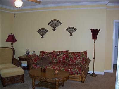 This freshly painted 3 bed, 2 bath split floorplan condo at Crow Creek surely won't last long at this price. This residence is beautifully done, offering crown molding, solid surface countertops, a laundry room with wash tub, a screened porch and an open covered porch. Crow Creek residents have many choices of how to spend their days. Sit back and relax on your private porch and enjoy the views of the 11th fairway and the pond. Or you may choose to take a stroll around the community, play a round on the world class golf course, relax in the indoor, outdoor, or zero entry pool, challenge a friend to a match of tennis, or go for a workout in the fitness center. The community amenity centers are the perfect places for residents to gather and entertain. Crow Creek is conveniently located minu