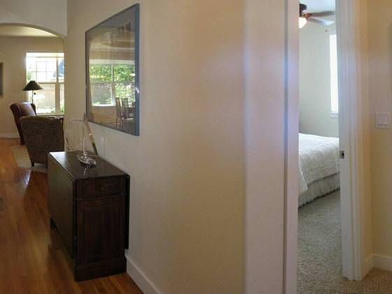 Home has arches, crown mouldings, tray ceilings, and wd floor in main living area. Cherry cabinets, stainless appliances and granite counters in kitch. Seperation between master and other beds.Master suite has walk-in closet, jetted tub dbl sinks and sep shower area. Flex 4th rm used as office. New centair system.Covered front porch and newer slate patio. Hot tub w/ covering