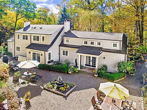 Multiple options to work from home! Take your pick from the 650ft space over the garage, the main level office/bedroom, or 2nd floor light-filled bonus room!Imagine the convenience of all that Westport has to offer (5 miles) along with direct fast access from Westport RR to Grand Central Station. This expanded & fully-remodeled country retreat, sitting well back from Newtown Tpk, is a showstopper! Upon entry to the living room you'll find stunning vintage oak panels from Cooperstown, NY, an attractive wood burning fireplace along with a nook for those who appreciate board games! A spacious light filled eat-in kitchen with breakfast bar & open plan dining space lead to a dry & wet bar! Take a look at the impressive double height great room which will impress visiting guests. A 1st floor bedroom (set up as a home office) with adjoining bathroom & stall shower complete the first level. Upstairs you will find 3 bedrooms & a bonus room plus several work stations. A childproofed 2nd staircase gives easy access back to great room. Radiant heat in the bathrooms!The oversized 2 car garage comes with a spacious (heated) upper level - perfect for a musician/artist/yoga enthusiast. Permission granted through March 2, 2023 for conversion of space to an income generating apartment (750 sq. feet). Updated Palladino septic system to accommodate a 6 bedroom home.Beautiful patio & terrace with awning and gazebo allow for endless seasonal entertainment!