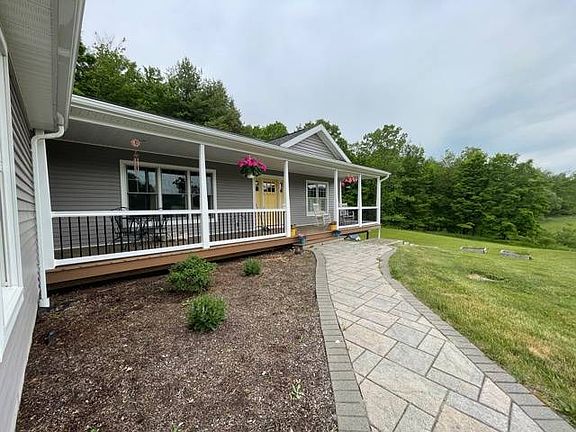 Welcome to this 8 year old, ranch style home nestled upon 12+ private acres of hay fields, woods & amazing views. This beautiful country home has numerous features including: Front porch w/Trex decking, White kitchen cabinets w/42" upper cabinets, some with glass fronts, granite counters, appliance garage, stainless appliances, microwave built in the island, garbage disposal, built in pantry cabinet & recessed lighting. Andersen slider & windows with integral grills, whole house generator for those stormy nights, radiant floor heating with 3 zones and central air. Tile/hardwood/Lam flooring. Walkout basement w/9' walls. California closets, recessed lighting & fans. Great place for small hobby farm, horses, etc. Please note prequalification must be given prior to showing.