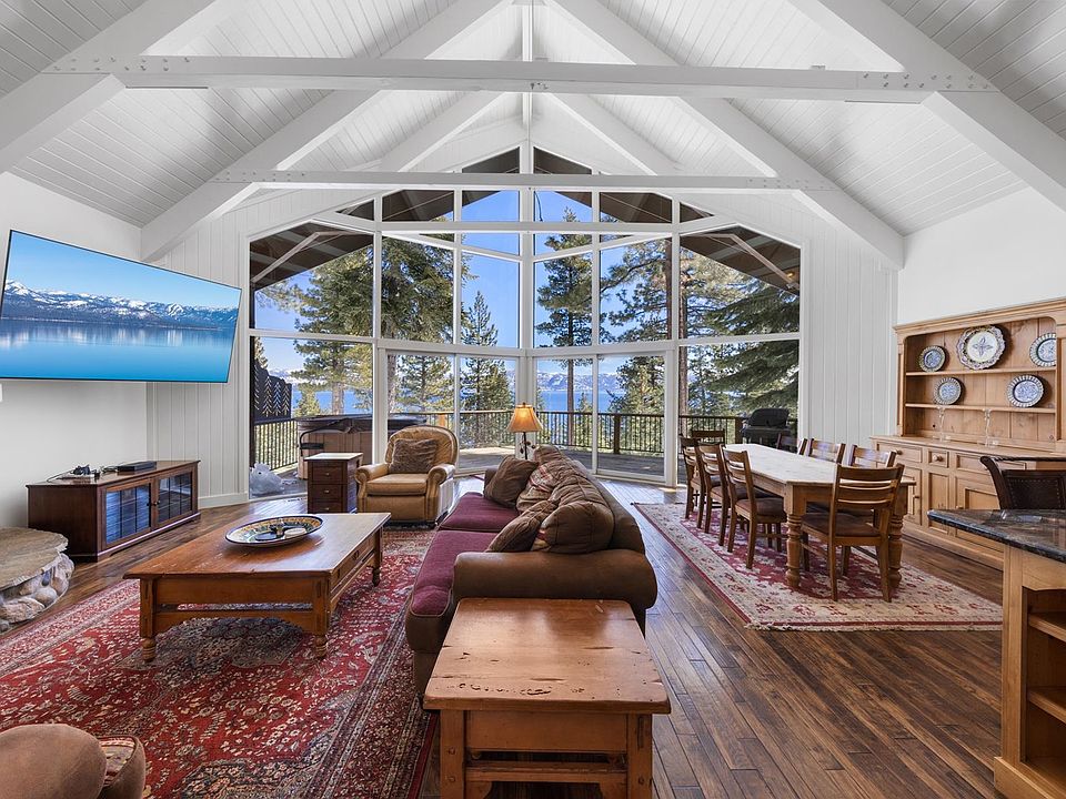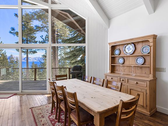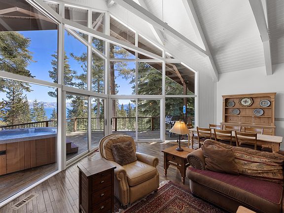With panoramic lake and mountain views from floor to ceiling east facing windows, this recently updated sunlight filled retreat is just a short walk to a gated members only lakefront park featuring picnic tables, a deep water pier, buoy field and kayaks and paddle boards. This expansive waterfront parcel is exclusive to a small number of property owners and is a great spot for summer days lounging on the pier or on its private beach. Extensive forest trails for hiking, mountain biking and walking the dog are just across the street. The location is also convenient to all North Shore ski areas and just minutes away from Tahoe City or Carnelian Bay amenities. The two story home is situated deep in a large lot which offers considerable existing coverage for possible additions such as a garage or house expansion and is also adjacent to a Ca Conservancy lot for added privacy. The open floor plan has a contemporary feel with its white interior and vaulted wood ceilings yet lives quite cozy at night with its rock hearth and Vermont gas stove. The deck is wonderful for outside dinners overlooking the lake and the spa is perfect for relaxing after an active Tahoe day with friends or family. This Tahoe Lodge is a perfect family retreat which could also be a productive short term rental should monetizing the property be important. Perfect as is or ready for your vision for a personal property enhancement.