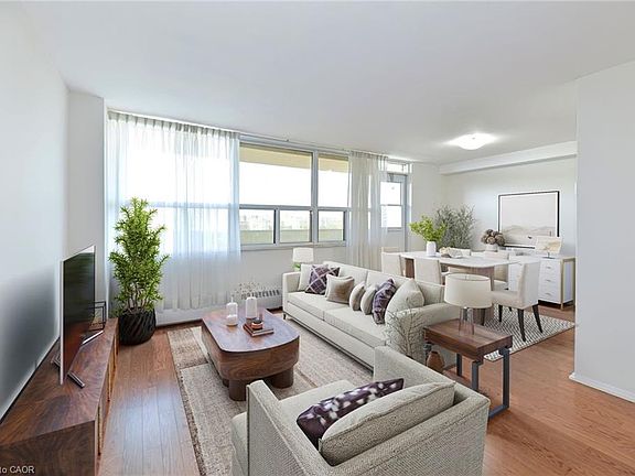 Welcome To 1601-270 Palmdale Drive. This Lovely Two Bedroom, Two Bathroom Condo W/ Beautiful Westerly Views Is Priced To Sell. This Unit Has Been Freshly Painted In Neutral Tones And Is Move In Ready. Renovated Kitchen With White Cabinetry, Granite Counters And A Trendy Backsplash. Lovely Hardwood Floors In The Combined LR/DR Area And A Walk Out To An Expansive Balcony. Two Good Sized Bedrooms With The Primary Boasting A Two Piece Ensuite And A Walk In Closet. Large In-Suite Storage Area And One Exclusive Use Underground Parking Spot. Maintenance Fees Include: Heat, Hydro, Water And Cable. Pet Friendly Building With The Following Amenities: Exercise Room, Sauna, Communal Laundry Facilities, Party Room And Lots Of Visitor Parking. This Condo Is Close To Highways, Public Transit, Schools And Shopping For Your Convenience. Exceptionally Good Value. Some Rooms Have Been Virtually Staged.