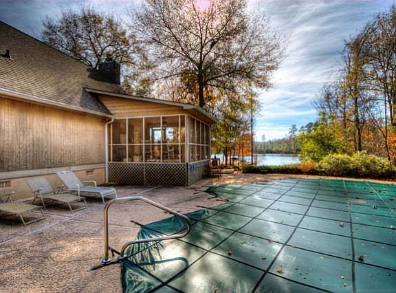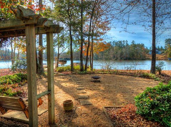 Down a winding drive through beautiful hardwoods and pines sits a quaint lake home with double garage/bonus room tucked away on a 1.5 acre lot with 167 ft of waterfrontage and a gorgeous lake view. Beautiful landscaping surrounds the home with lots of shrubs and flower gardens. Inside this meticulously maintained home, are 3 large bedrooms and 2 baths, a charming kitchen and dining area with wet bar, custom cabinets, corian counters and stainless steel appliances. The living area has a floor-to-cealing stone fireplace, cedar ceilings and hardwood floors. Outside you will find a lakeside deck, screened porch, pergola, salt water pool/jacuzzi, and a max dock/double boathouse with lifts. Such a private and tranquil setting, the perfect place to sit back, relax and enjoy lake living.