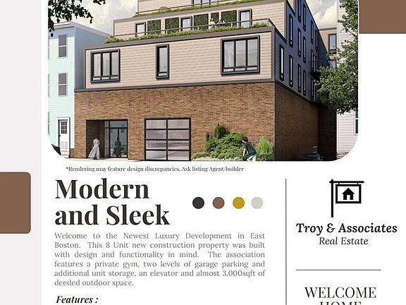 *SPECIAL FINANCE RATE OFFERED* Please ask Listing Agent or see attached Flyer.* Offer set to expire so make an appointment to tour the property today! ONLY 3 UNITS LEFT. Welcome to the Newest Luxury Development in East Boston. This 8 Unit new construction property was built with design and functionality in mind. The association features a private gym, two levels of garage parking, an elevator and almost 3,000sqft of deeded outdoor space. Step foot into your very own private oasis with high ceilings, large windows, lots of natural light and a neutral design color pallet. The kitchens and doors were imported from Italy from cabinet maker Aran Cucine. Construction is underway and should be complete in March 2023. Come see the Model Unit and decide which floor plan is best for you! Each unit comes with 1+ parking spots. Ask agent about Floor Plans, Pricing and Availability.