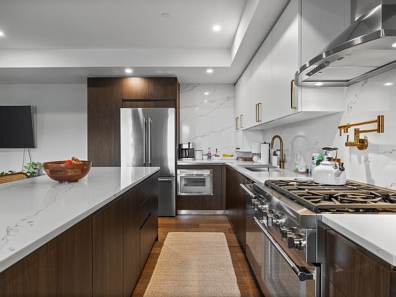 Enjoy an unparalleled lifestyle moments from East Boston’s most vibrant offerings with this 2023 new construction 3 bed 2 bath flat. Meticulously crafted with both design and functionality in mind this inviting home boasts a sundrenched open concept floorplan that seamlessly flows onto a private deck with stunning city views. The contemporary kitchen, accentuated with a gold quartz countertop and backsplash, is well-equipped with custom Aran Cucine cabinets, top-of-the-line Thermador appliances and a pantry. The primary suite with impressive skyline views has two closets, one of which is a spacious walk-in and a spa-like bath complete with a luxurious shower, deep soaking tub and totto toilet. Two bright and airy guest bedrooms, a modern bath and a second private deck round out the main living area. Enjoy the convenience of living in a boutique elevator building with a private gym, 2 garage parking spots and deeded storage less than 5 min from the Blue MBTA line and Maverick Square.