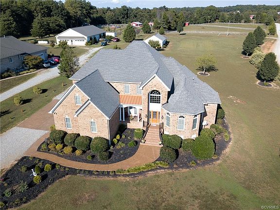 Welcome to 270 Petersburg Road! This gorgeous 4,900 square foot brick home is located on 4.3 acres in eastern Powhatan county just 6 minutes from 360/Hull Street! At first glance, this two story home's vaulted ceilings take your breath away. This home's kitchen features an open floor plan with granite countertops with sight lines into the main living room and massive island for extra food prep space. The entire home is illuminated by the spacious windows that line the walls. This home contains 4 bedrooms and 3.5 baths giving you plenty of space for your family to both have space and come together. This home also features an additional flex room which could be used either as an additional bedroom, playroom, or multipurpose space. In addition to the plethora of indoor space, this home also features both an attached and detached garage, the perfect multipurpose spaces. With NEW HVAC UNITS (2017) and FRESH PAINT, this property is the perfect buy and is even listed well below tax assessment. Don't miss out! Come check out this beautiful property today!