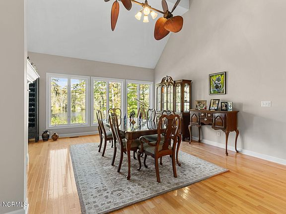 Entering the front door, you're welcomed into the foyer, where French doors to the left open to a spacious office or dining room filled with natural light. The show-stopper is straight ahead as you're welcomed by a large, versatile living space with hardwood floors and walls of windows offering wide views of Yeopim Creek. The room flows seamlessly into the kitchen, which features a double-sided gas fireplace, a large island, new dishwasher, tankless water heater, gas range, and more. Nearby, a cozy breakfast nook and additional living area offer even more river views. Just down a few steps, the sunroom is lined with windows and sliding doors, and leads directly to your outdoor oasis.