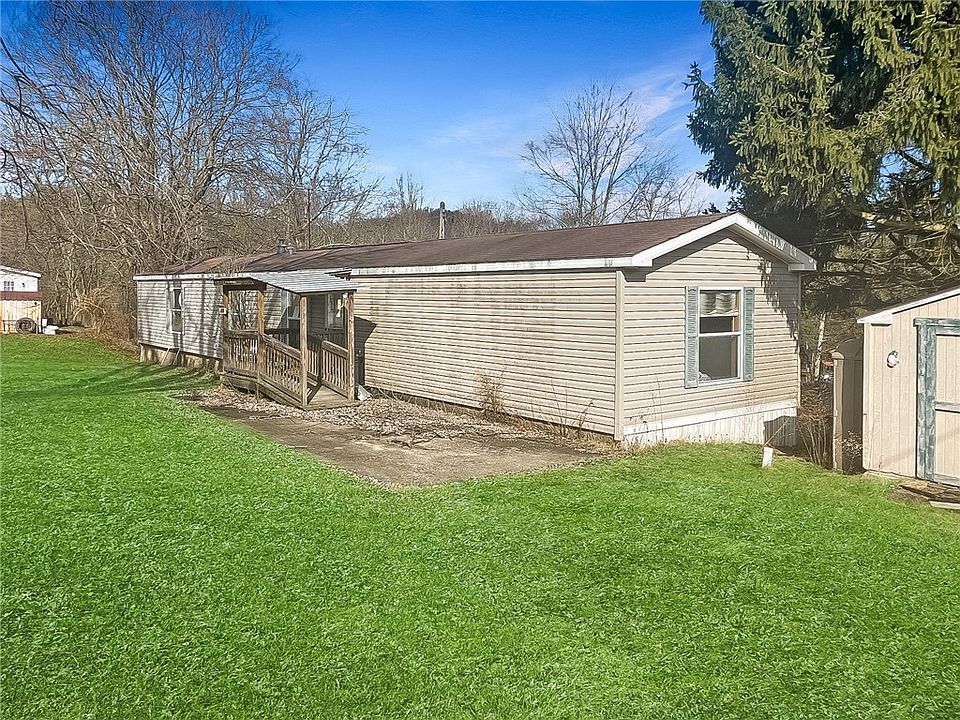 This 3 bed 2 bath single wide offers an opportunity for everyONE! Rather just starting out, downsizing to ONE floor living, or needing 3 bedrooms this home offers that! Entering the home you will find an open floor plan which flows nicely from the living room area into the kitchen and dining space! Down either hall you will find enough bedrooms and bathrooms for all! The main floor also features a laundry space, making 1 level living very possible! Outside you will find a great location in a small development just minutes from 422. Additionally this home has a generously sized lot perfect to stretch out a little amongst convenient neighborhood living! Give this home a good cleanout and put your finishing touches on it today!