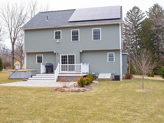 Smart and energy efficient home. Only 10 minutes from I-91, this 4 bedroom, 2 1/2 bath colonial features an open concept with hardwood floors throughout the first floor. The kitchen boasts granite countertops, stainless steel appliances, upgraded cabinets and kitchen island seating. The 2nd floor offers a master suite and 3 additional bedrooms with 2nd full bathroom.This fantastic home comes complete with a finished basement with an overhead projection theater and plenty of room for entertaining. Enjoy starry nights on nearly a 1/2 acre of land which offers a a 12' x 16' composite deck, expanded patio seating area and jetted hot tub. This smart home can be controlled right from a phone. From adjusting the temperature, lighting, opening the garage door, you are always just a swipe away. Ready to be done paying electric bills? The solar panels are owned and generate more power than the home uses. Save over $2,000 per year in utility costs.