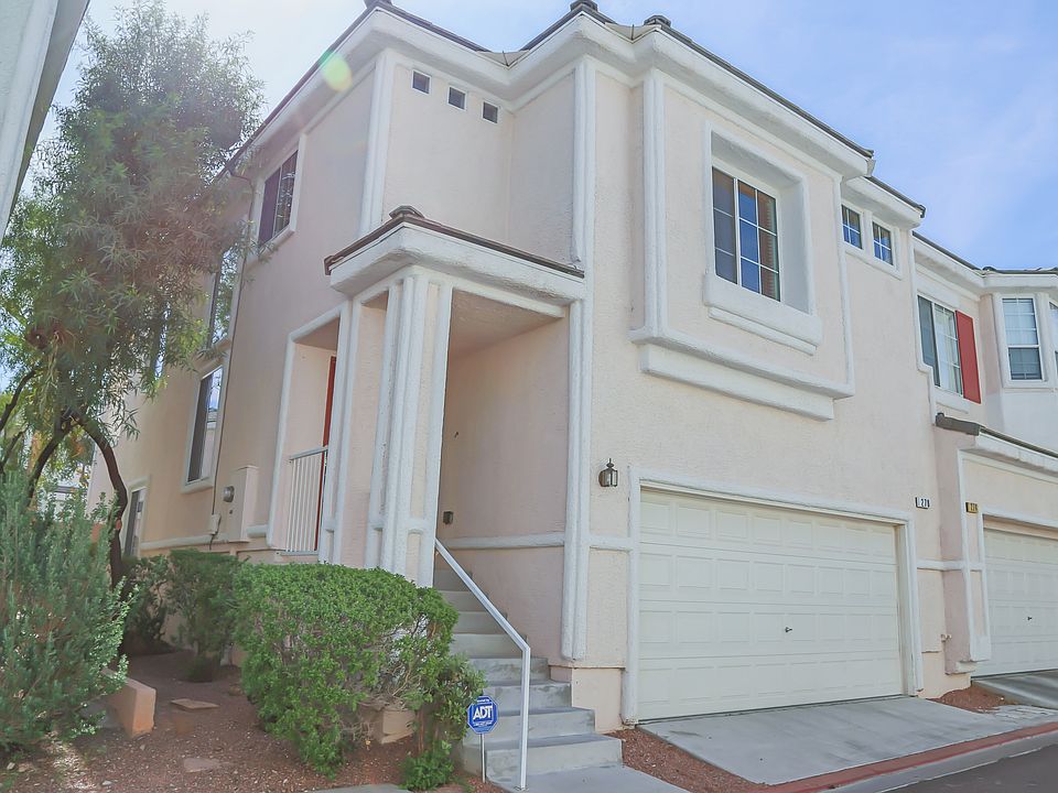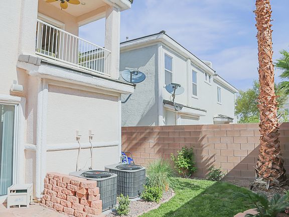 Guard-gated townhouse often called "dual primary floorplan" in Green Valley Ranch Work at home in your loft balcony, enjoy the flexible alcove off primary bedroom currently used as custom closet. En-suite bathrooms for both bedrooms and solar screens on east- and west-facing bedroom windows. New porcelain tile in living room and on stairs, textured ceramic tile in kitchen, laundry room and bathrooms. Cast iron sink, pot rack, and GE Profile appliances in kitchen. Landscaped backyard automatic bubblers and new turf (not attached to deed "Heat Max" cooling technology. Flagstone patio outdoor speakers connected to surroundsound. Separate A/C units for upstairs and downstairs. Water heater new 2022. Add'l garage "attic" storage. Community pool & spa. Conveniently located near trails, Paseo Vista park/dog park, Green Valley Ranch resort, the District shopping and dining, the new Dollar Loan Center arena, Henderson Multigen Center, library, and e-z fwy access.