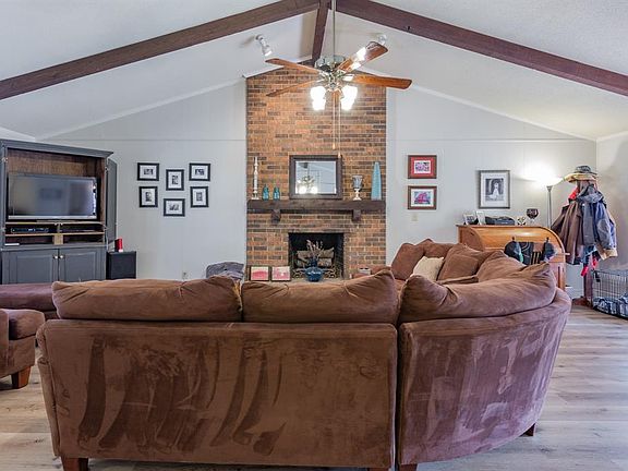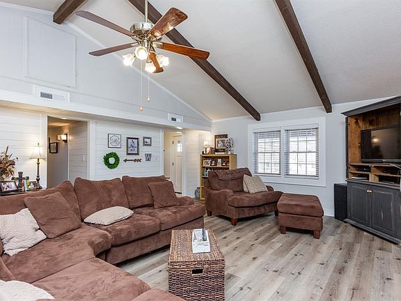 There are so many features you're going to LOVE about this home, starting with the welcoming porch that draws you in along with the eye catching front door. There is a convenient drop zone located in the foyer which leads into the impressive great room that features a high vaulted ceiling with beams, a ship lap accent wall and vinyl plank flooring. At the center of the room is a cozy brick front fireplace. Beautiful brick floors run through the kitchen and dining room. The kitchen offers lots of counter space including a breakfast bar and stainless steel smooth top stove and dishwasher. Refrigerator remains! The dining room is spacious with lots of windows that allow natural light to flood the room and the ceiling features wood beams matching those in the great room. A large laundry room with built in cabinets is located off the dining room. You can never have enough storage space and this home certainly isn't lacking any! You'll find two large closets in the hallway which leads to the bedrooms. Two good sized guest bedrooms, one with a walk in closet. A nicely appointed guest bathroom offers bead board ceiling and custom made countertops. The master suite is very spacious and also features a bead board ceiling and two walk in closets! The bathroom has a built in linen cabinet, custom counter top, and tons of character. Lots of ship lap accents throughout this home. There's even more to see outside! A covered patio on the back of the home is a great spot for relaxing or entertaining. A detached 20 x 40 workshop/storage building could also be used as an awesome man-cave/she-shed! The backyard is oversized and fully privacy fenced. Located in the much sought after Redland Elementary School District! This one will not last long, don't miss out on this exceptional home! Call and schedule a tour today!!