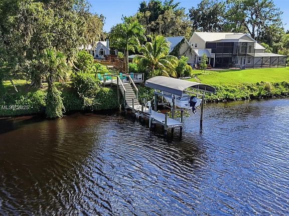 Private boat dockCozy fireplaceUnique chicken coopDirect caloosahatchee river accessBreakfast barMetal roofFinished basement