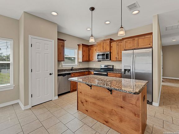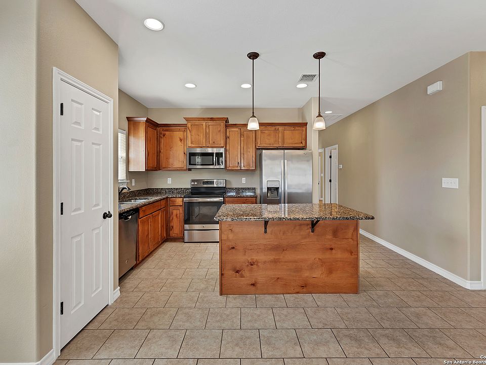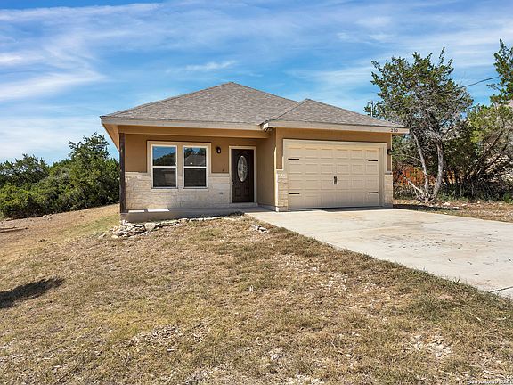 This cute home is located in the quiet and desirable Rocky Creek Ranch subdivision with a neighborhood pool, clubhouse, and playground. Positioned on a large 1/2 acre lot giving you plenty of privacy off the covered back porch. Granite counter tops, Stainless steel appliances, refrigerator conveys, and water softner installed. Good sized walk in closet in master bedroom and walk in closet in one of the other bedrooms. 1-1/2 car garage large enough for some lake toys, with pull down attic space. Home is close to boat ramps and Canyon Lake parks, with the Hill Country as your play ground!