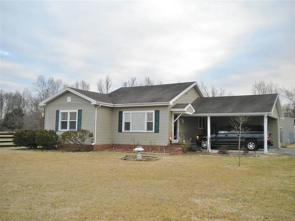 Country cottage with carport, workshop and barn for horses on 5.44 acres. Totally rewired, replacement windows, vinyl siding, updated baths, covered deck and above ground pool with new liner. HVAC installed in 2011, new water heater and dishwasher. Large eat-in kitchen, all appliances stay. Security system serves house and workshop.